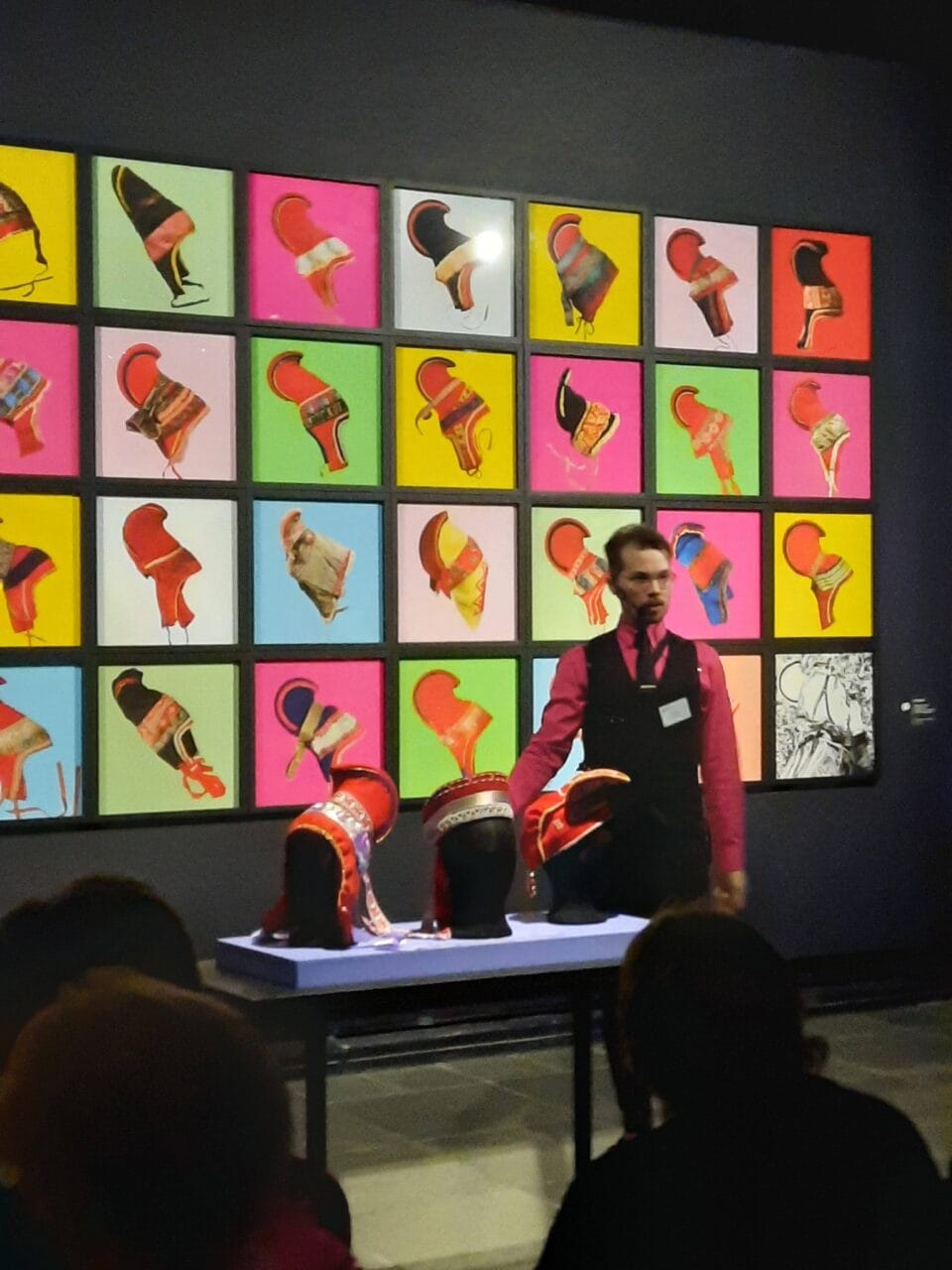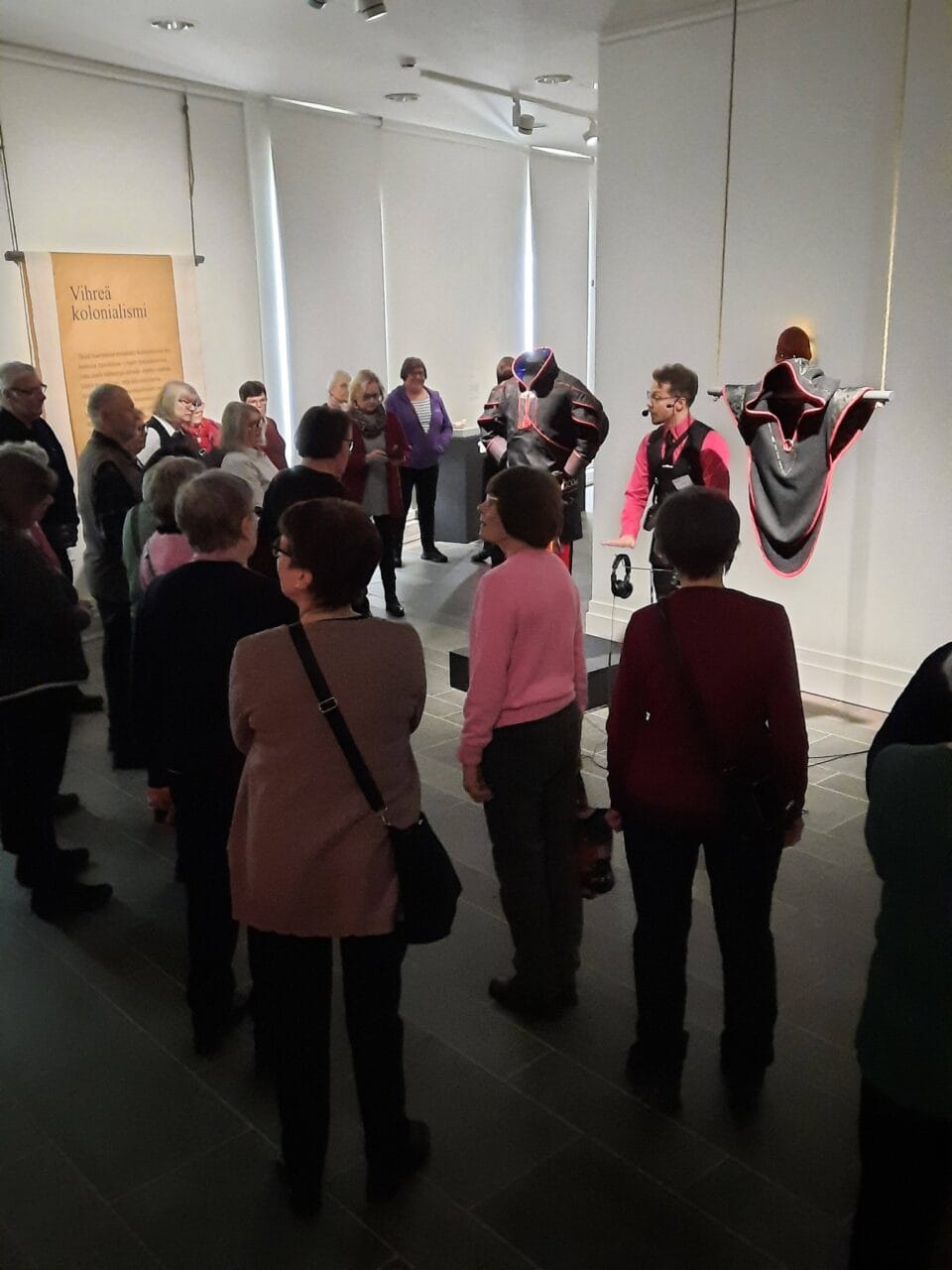 Ryhmässämme oli mukana 32 yhdistyksen jäsentä. Koko produktion esitteli meille ilmeikkäästi museoassistentti Valtteri Viiva. Saamelaisuuden historia, arjen elämä ja käsien taituruus tulivat teosten välityksellä näkyväksi.